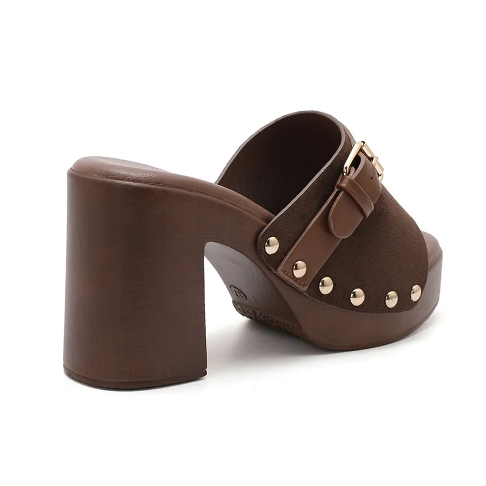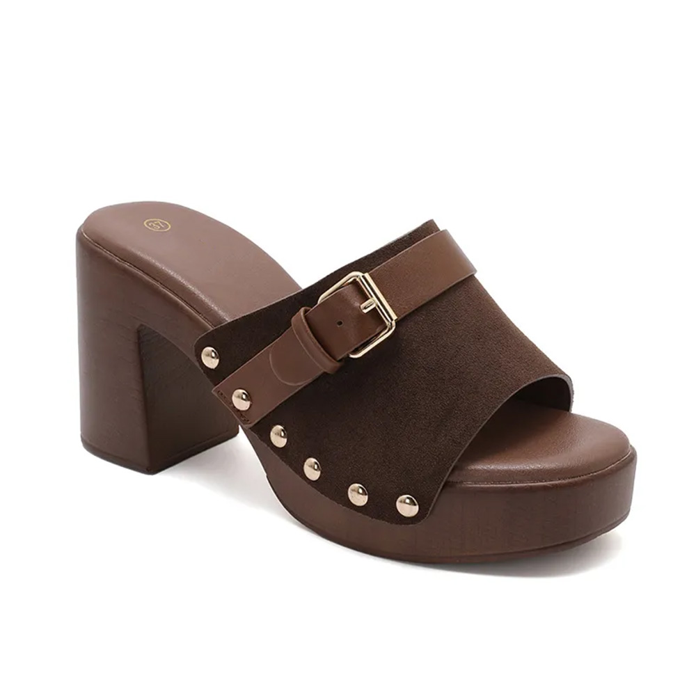 Καφέ mules με τακούνι και ταμπά λεπτομέρεια – κωδικός ΚΑ90