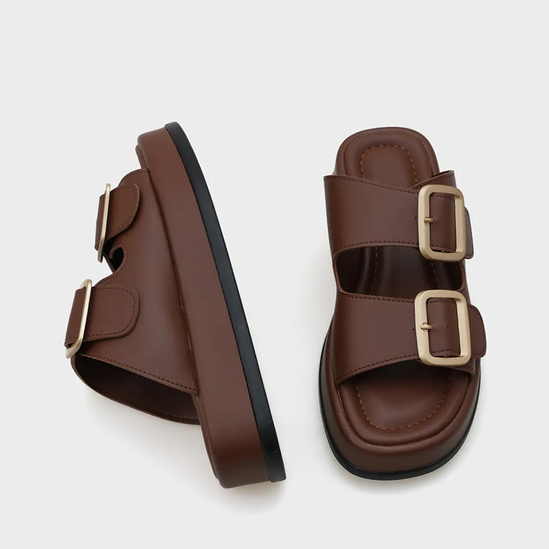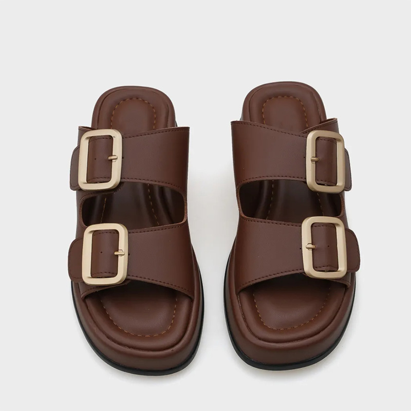 London καφέ παντόφλες με διπλή σόλα και χρυσές λεπτομέρειες – κωδικός 1501
