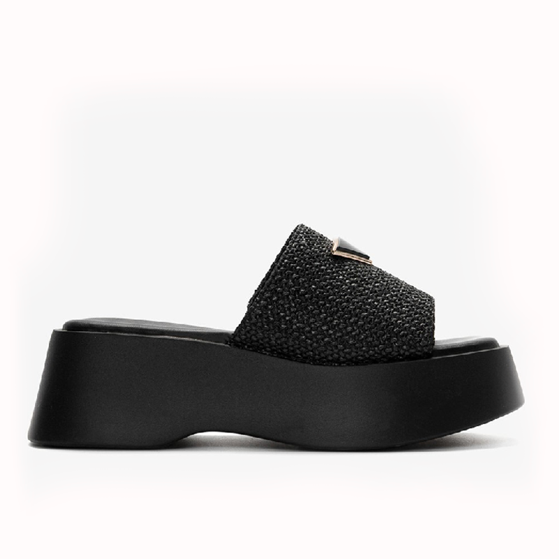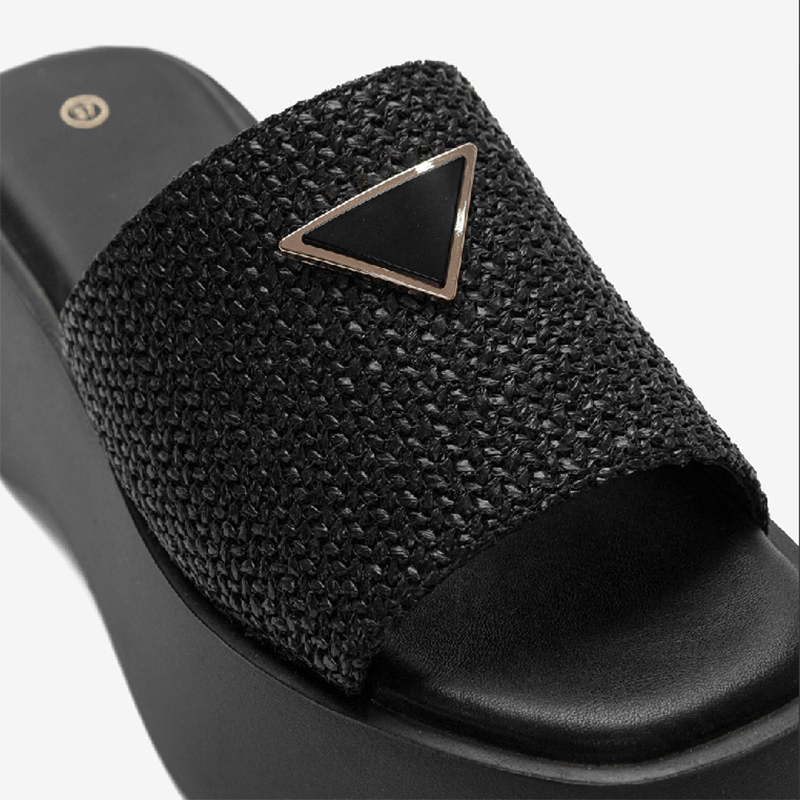 Δίσολες παντόφλες μαύρες με διακοσμητική λεπτομέρεια – κωδικός 032