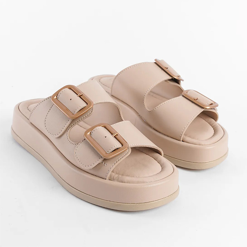 London μπεζ παντόφλες με διπλή σόλα και χρυσές λεπτομέρειες – κωδικός 1501